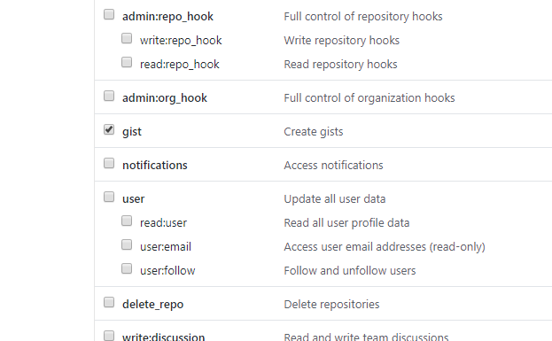 但是这个获取到的token权限有点大,我们需要设置一个只可以操作gists的token