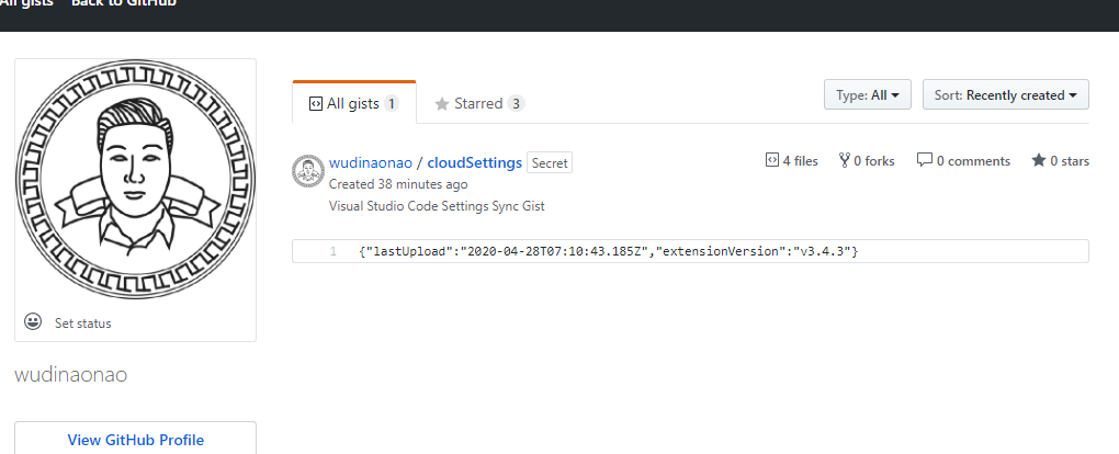 但是我之前根据网上的教程设置的时候后,把刚才我们获取到的Token 设置成了 Gist ID,这样会造成